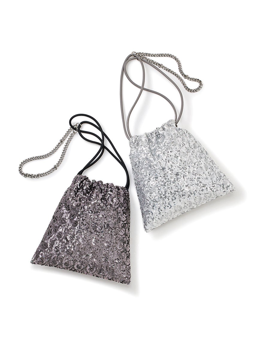アクセサリー感覚で持てる巾着型のスパンコールバッグ。見た目以上の収納量も魅力です。