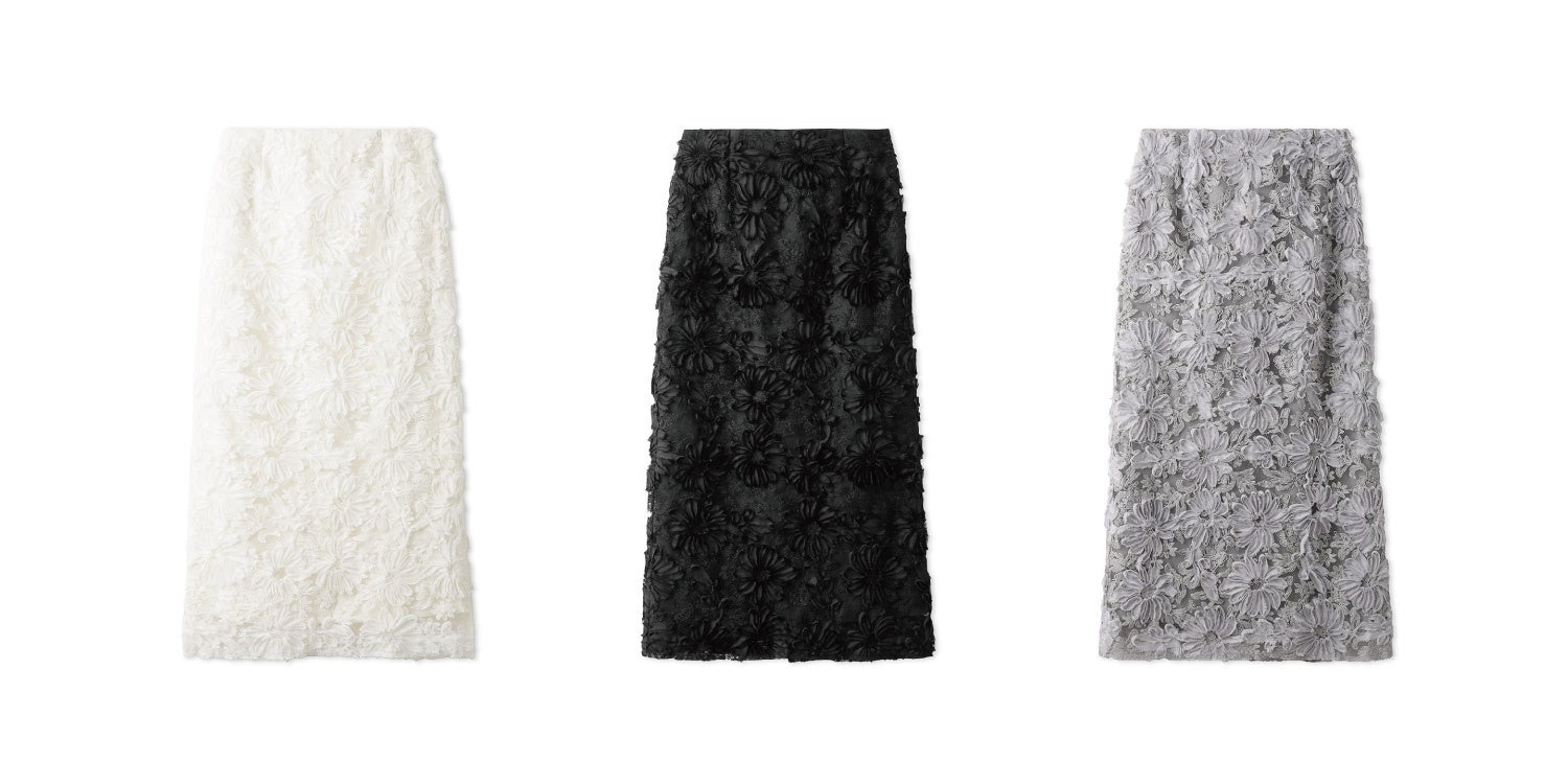 コーディネートの主役になる花柄チュールスカート。存在感のある素材を使用していますが、裾と裏地に差寸があるので透け感が出て軽やかな印象に。シンプルなトップスに合わせるだけで着映えるスカートです。