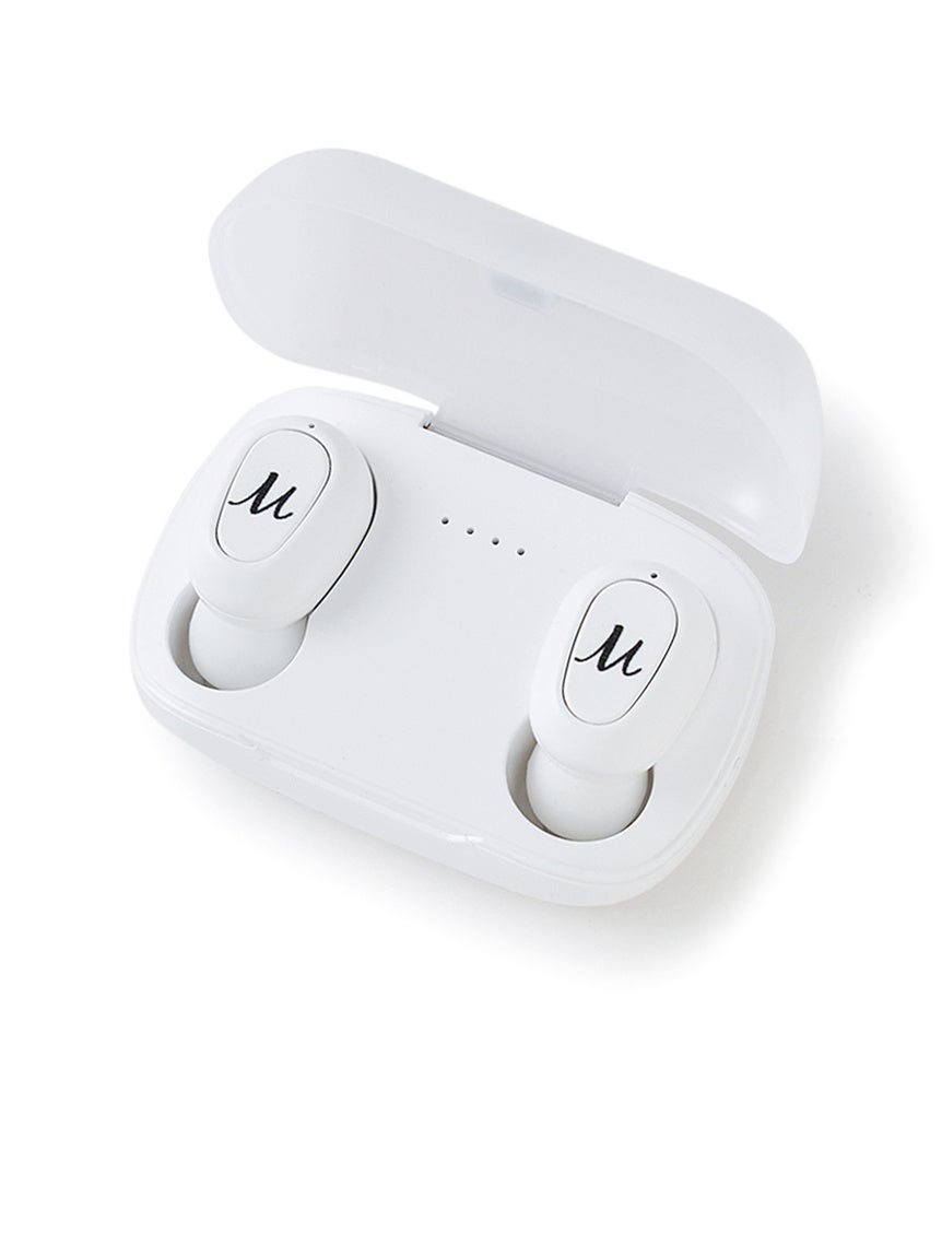 ブランドロゴのMを施したオリジナルのワイヤレスイヤホン。本体だけでなく、ケースにもロゴが入ったスペシャル仕様です。