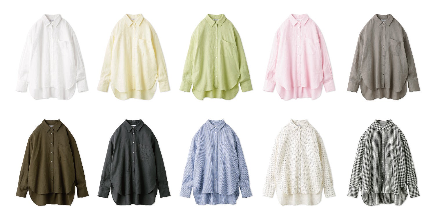 フレンチリネン特有の光沢感と、柔らかな肌触りが毎年人気を博している夏の定番アイテムを、ブランド10周年を記念し10カラーでご用意しました。後身頃には深めのヨークと中心にはボックスタックを施し、たっぷりとゆとりを持たせたワイドシルエットで、コーディネートの主役としても夏の羽織りとしても活躍する1枚です。