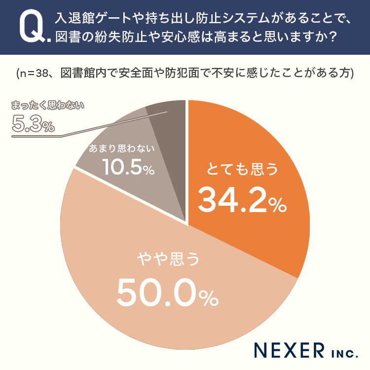 続いて、不安を感じたことが「ある」と回答した方に、入退館ゲートや持ち出し防止システムがあることで、図書の紛失防止や安心感は高まるかどうかを聞いてみました。