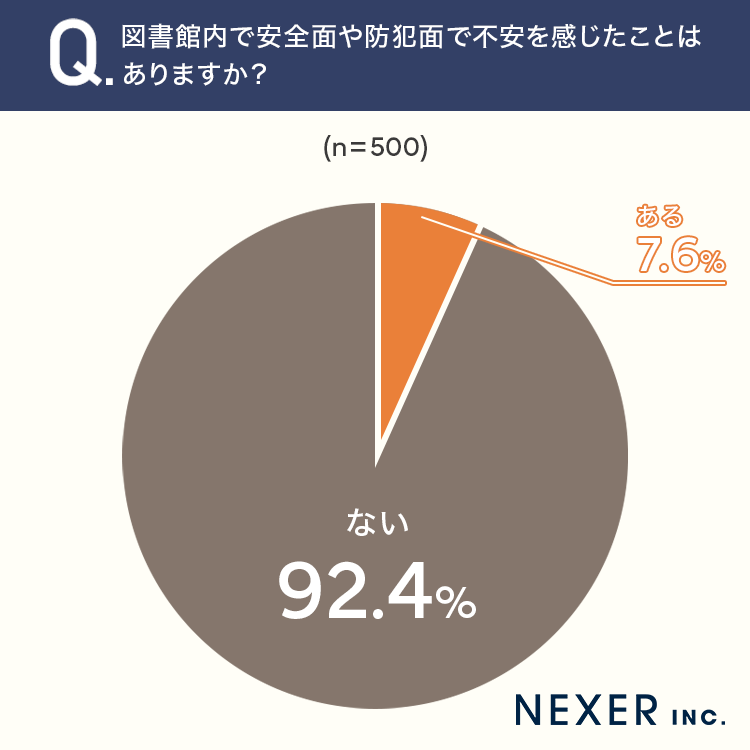 ■7.6%が、図書館内で「安全面や防犯面で不安を感じたことがある」と回答
