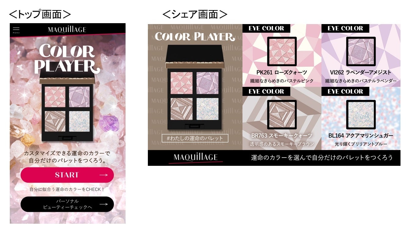 カスタマイズできる運命のカラーで、自分だけの運命のパレットをデジタル上でつくって楽しめるコンテンツ『COLOR PLAYER』(https://maquillage.shiseido.co.jp/colorplayer/?rt_pr=trp17)も、今回の限定カラー4色を追加してアップデート。