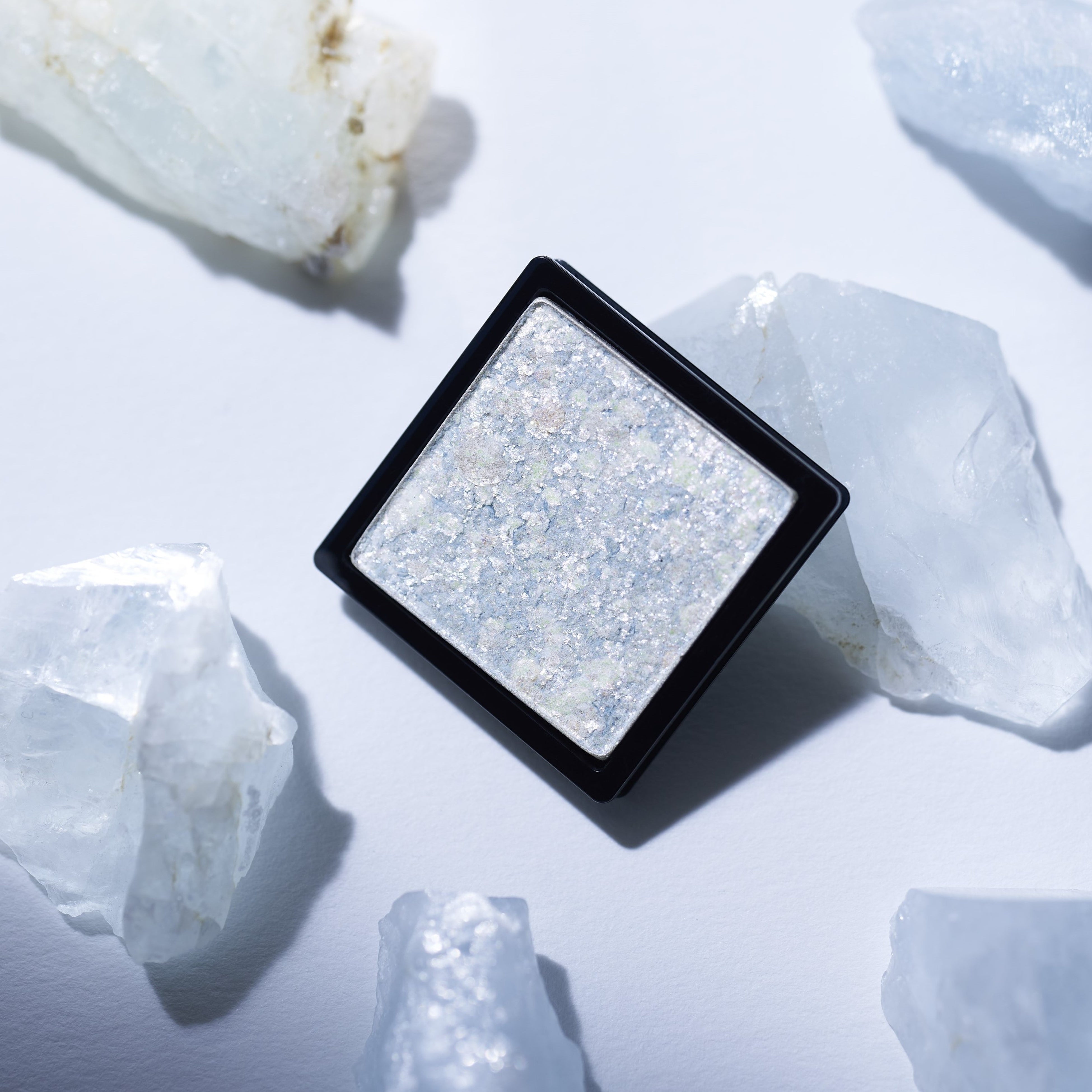 まぶたの中央や涙袋に重ねてきらめく目もとに仕上げ、透明感のある輝きを与えるラメカラーです。