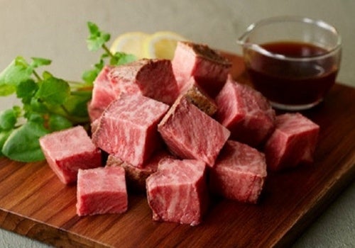 牛肉の中でも1頭から2〜3㎏しか取れないと言われる希少部位トモサンカクを使っています。(100g)税込999円