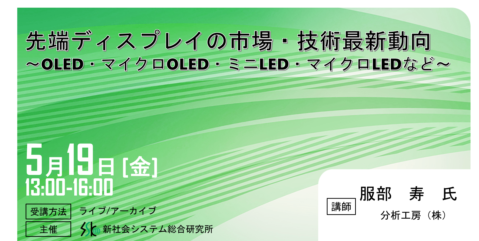 「先端ディスプレイの市場・技術最新動向」と題して、分析工房(株)照明・ディスプレイ事業部 シニアパートナー 服部 寿氏によるセミナーを2023年5月19日(金)に開催!!