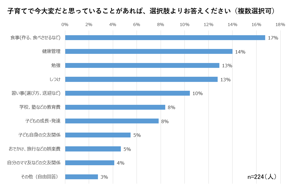 「食事を作ること、食べさせること」「健康管理」は、子どもの年齢に関係なく子育て中はずっと大変なこと。