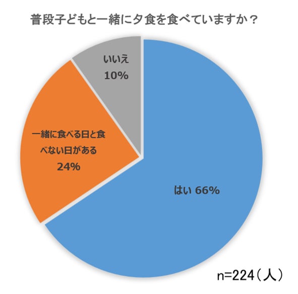 子どものために夕飯を作っても、一緒に食べない日がある人が24%、まったく一緒に食べない人も10%いる。