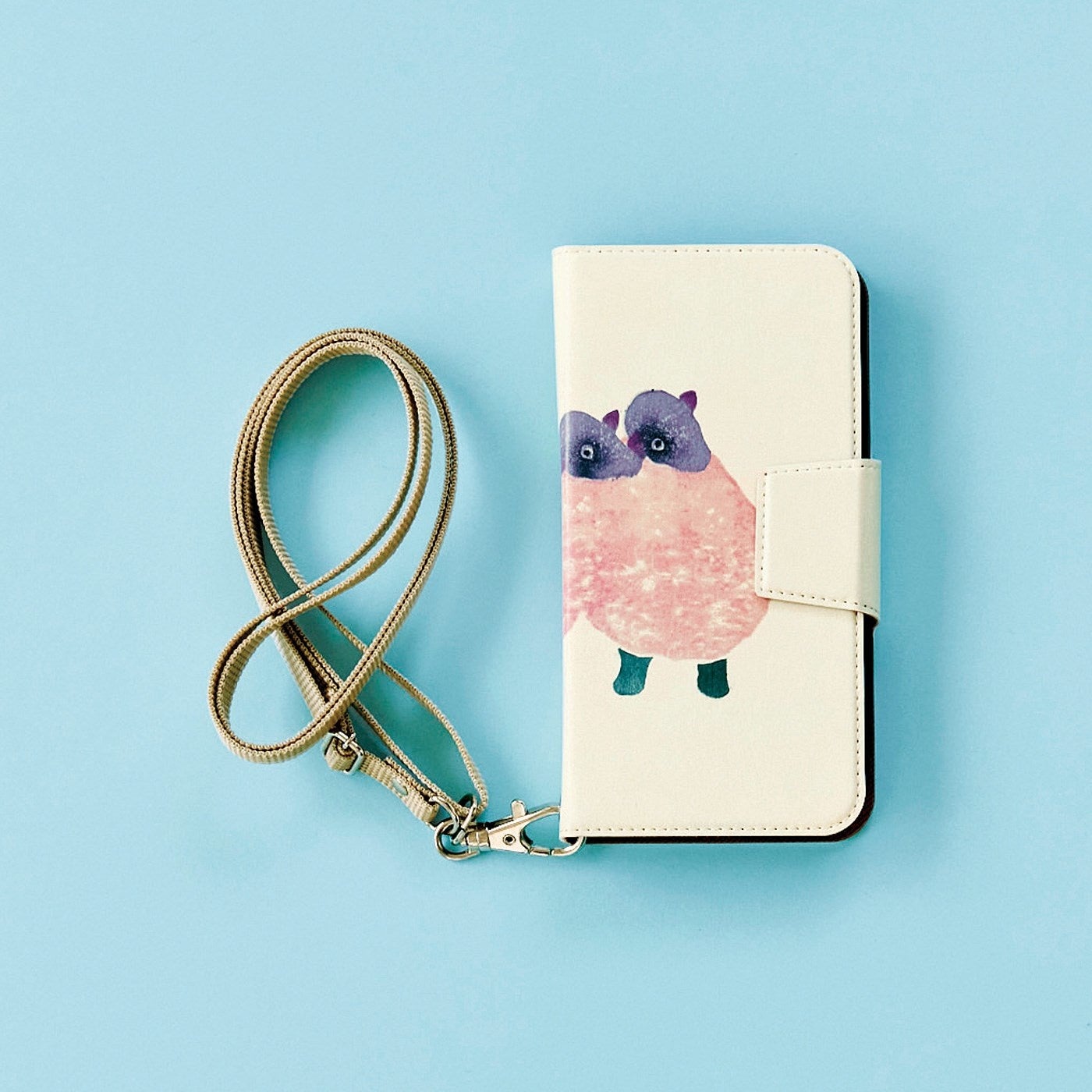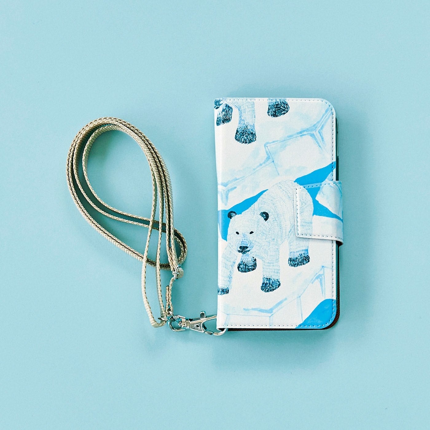 愛らしいアニマルデザインに心癒やされるスマホカバーです。デザインは、氷上にどっしり構える〈しろくま〉と、ふわもこな2匹がかわいい〈ひつじ〉の2種類です。それぞれ、お手持ちのスマホに合わせて大小2サイズから選べます。