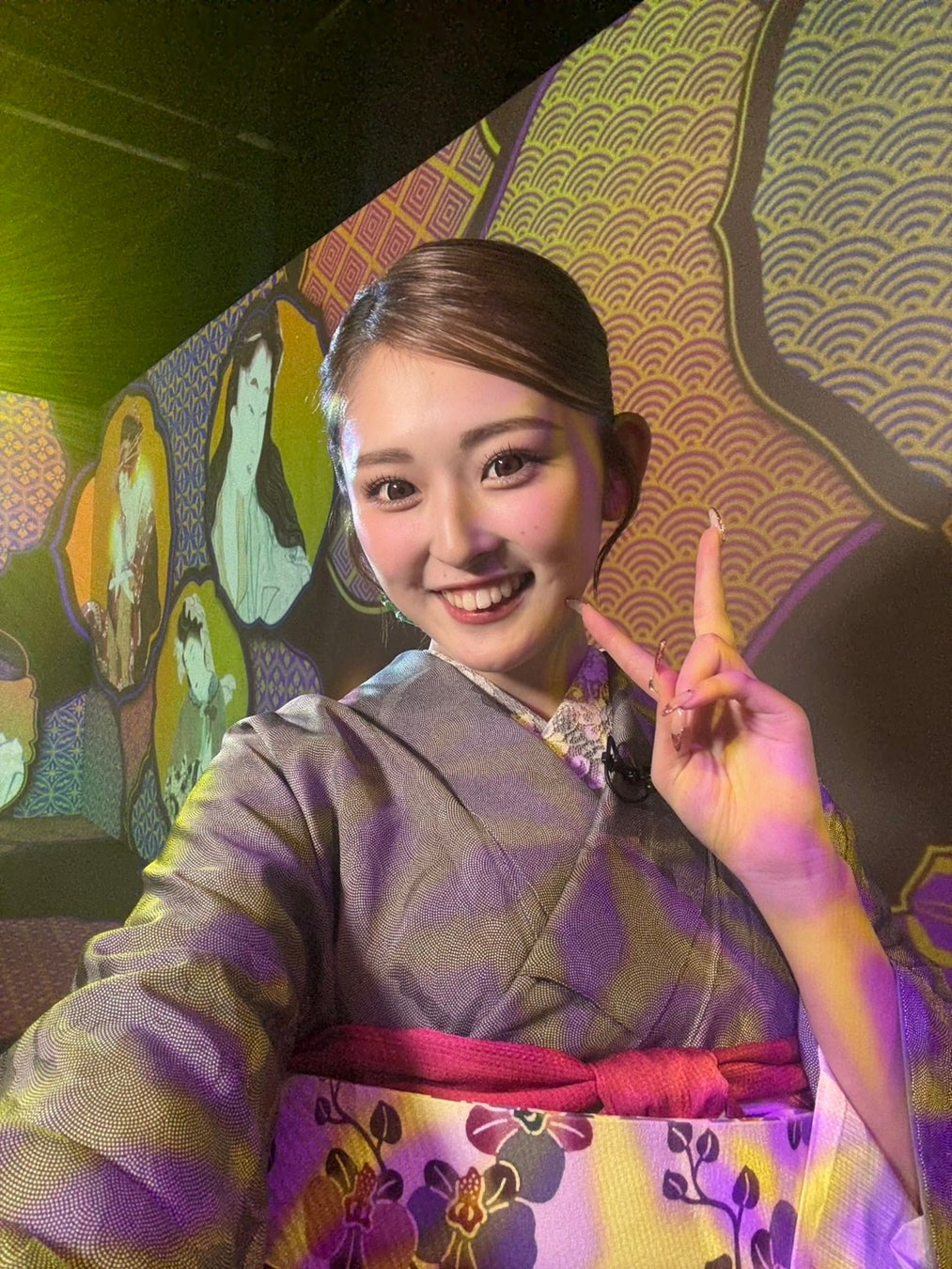 浮世絵の美しい映像と一緒に「自撮り」を楽しめるのも、この展覧会のポイント。着物姿のゆうちゃみの自撮り写真も必見!