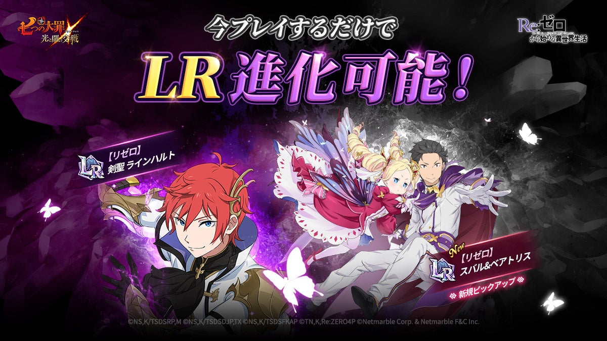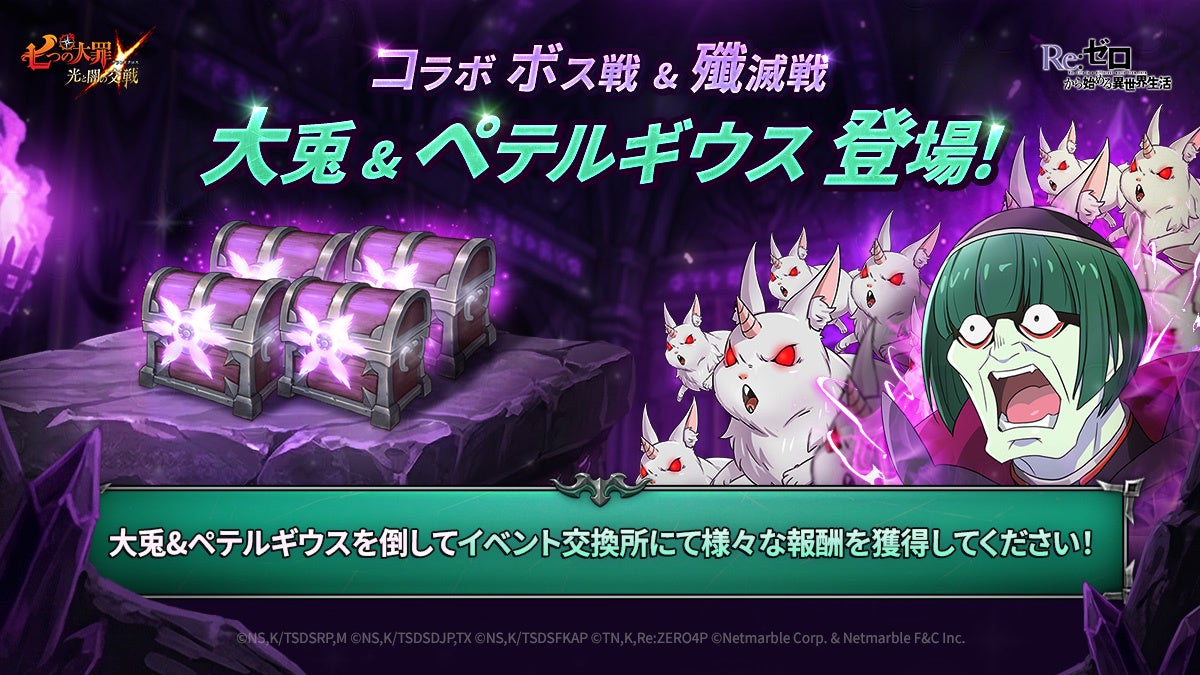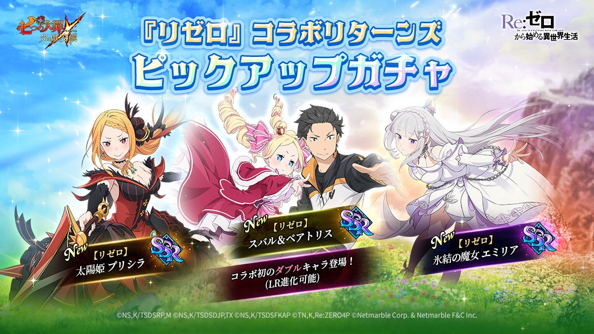 『七つの大罪 ~光と闇の交戦~』×『Re:ゼロから始める異世界生活』コラボ~因果共鳴~開催!新規コラボキャラ【リゼロ】スバル&ベアトリス、【リゼロ】氷結の魔女 エミリア、【リゼロ】太陽姫 プリシラ登場