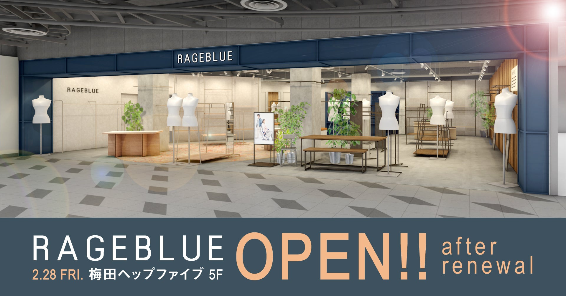 「RAGEBLUE」梅田ヘップファイブ店が、2月28日にリニューアルオープン! “FIVE Ups!” をテーマに、5つの “アガる” コンテンツを展開