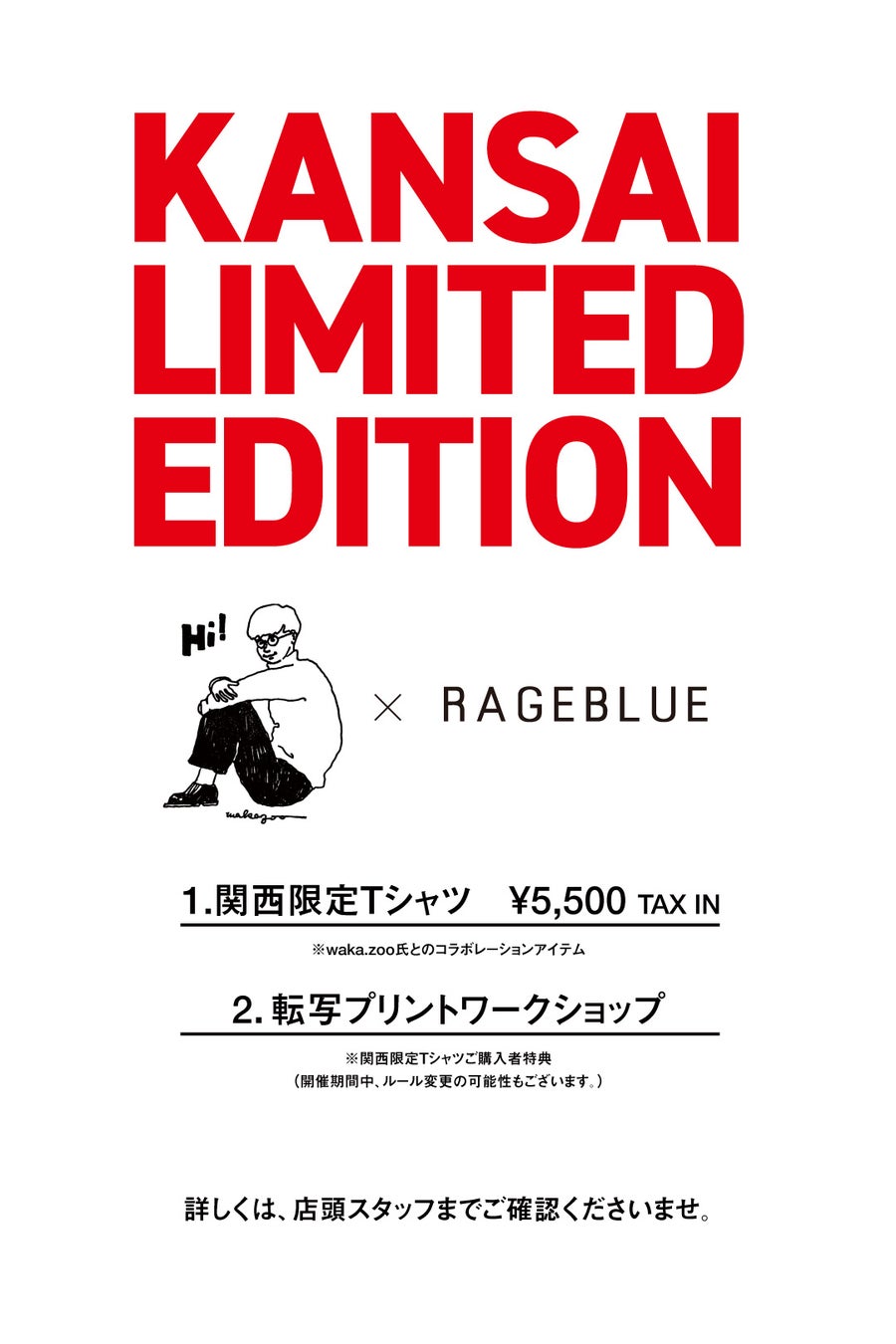 関西限定の本企画は、レイジブルーがデザインをディレクションし、waka.zooさんの解釈で手描きイラストに編集した特別なデザインです。