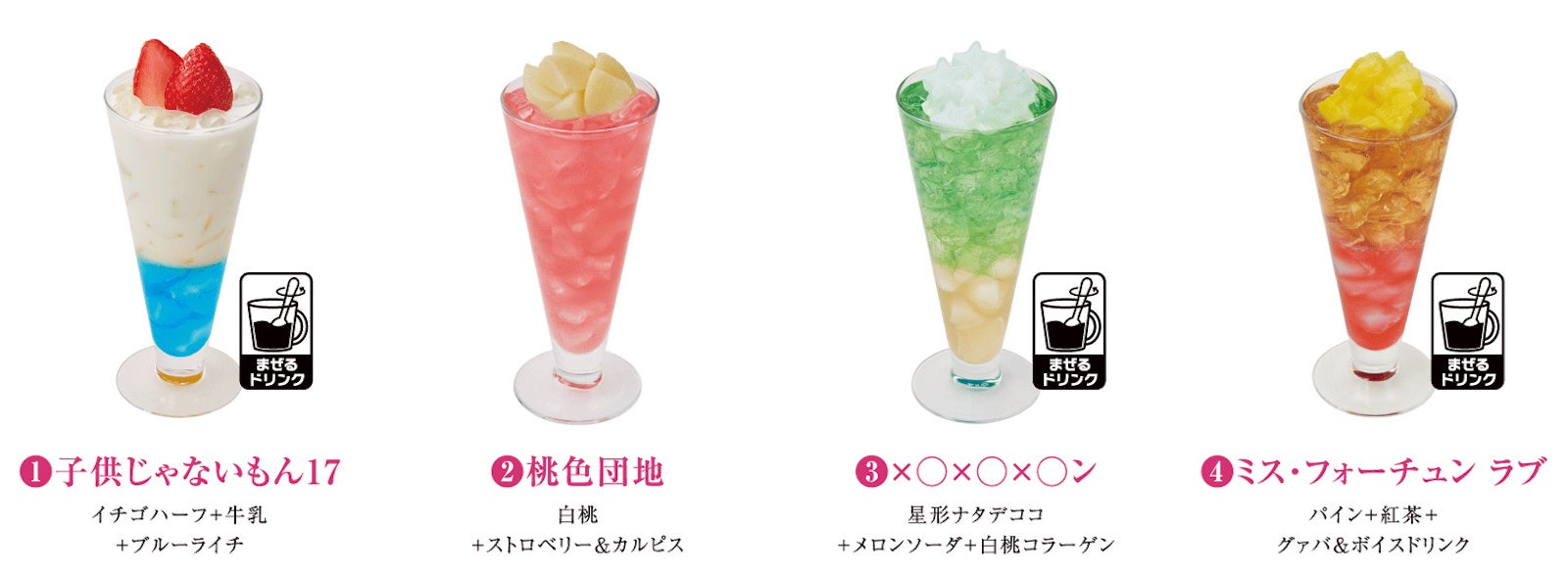 「大森靖子」の楽曲をイメージしたコラボドリンク4種[各750円(税込)ノンアルコール]をご用意しました。