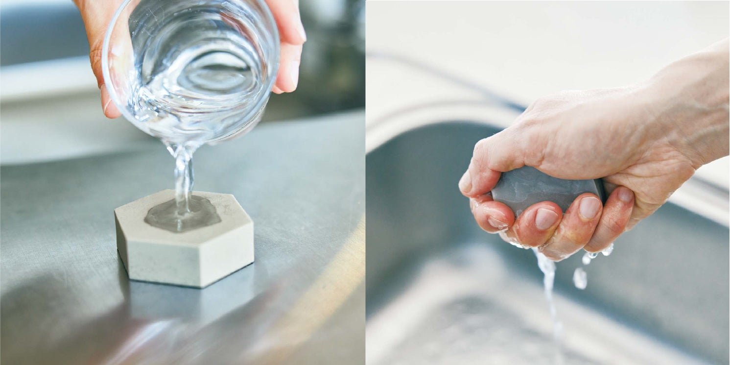 吸水スポンジの片面に研磨材をくっつけた、「みがく」と「拭く」が便利に行える新発想のお掃除グッズです。水アカ掃除は研磨面で行い、みがいた後の水滴はスポンジで瞬間吸水が可能です。スポンジの弾力で、ステンレスにもキズが付きにくいため、機能性も抜群です。