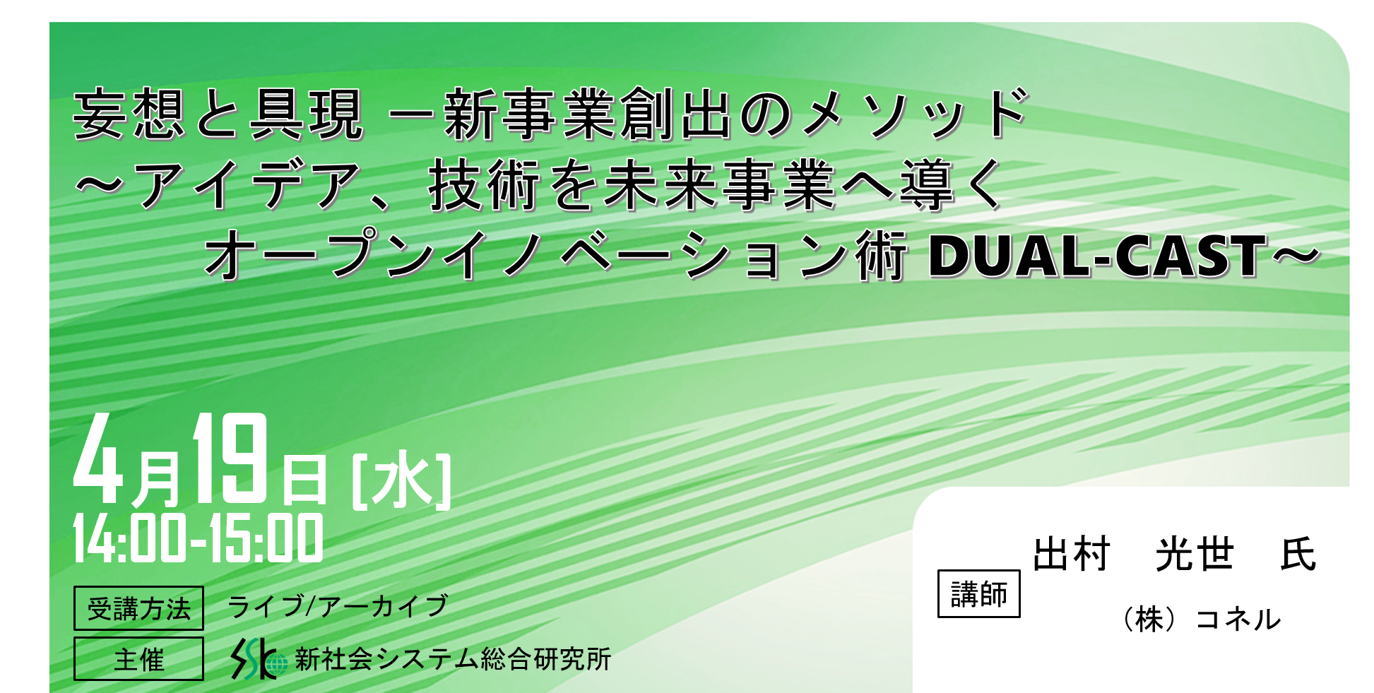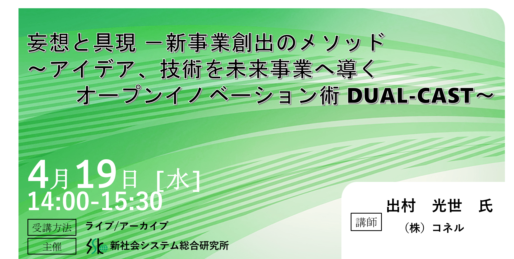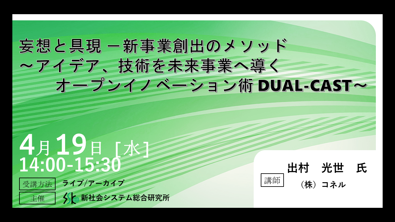 「妄想と具現 -新事業創出のメソッド」と題して、(株)コネル 出村 光世氏によるセミナーを2023年4月19日(水)に開催!!