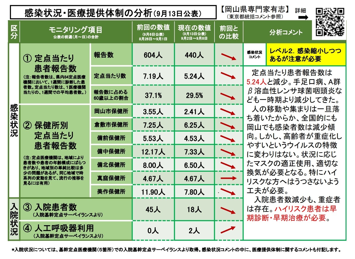 【岡山大学】岡山県内の感染状況・医療提供体制の分析について(2024年9月13日現在)