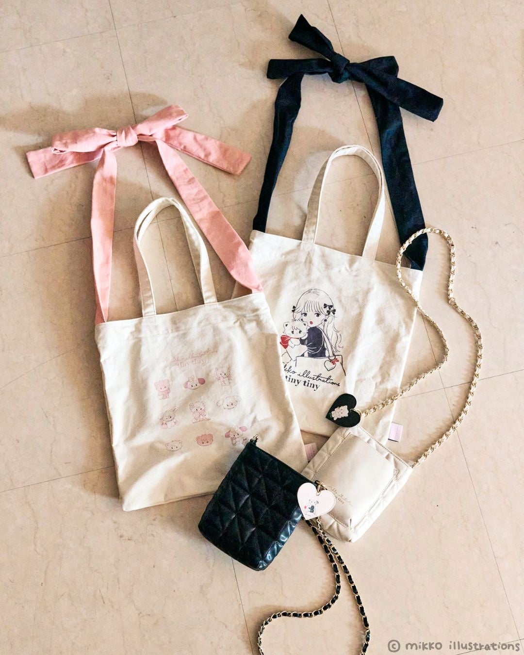今回、「mikko illustrations」の持つチャーミングな雰囲気が「tiny tiny」の世界観とマッチしていると感じたことから、コラボレーションが実現いたしました。コラボレーションアイテムには今回のために描き下ろされた特別なグラフィックを使用して、モバイルアクセサリーやトートバッグなど「tiny tiny」の人気アイテムに「mikko illustrations」の世界観をミックスさせています。