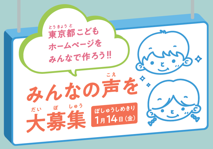 東京都では、本日より「東京都こどもホームページ」に関する子供向けアンケートを実施しますのでお知らせします。