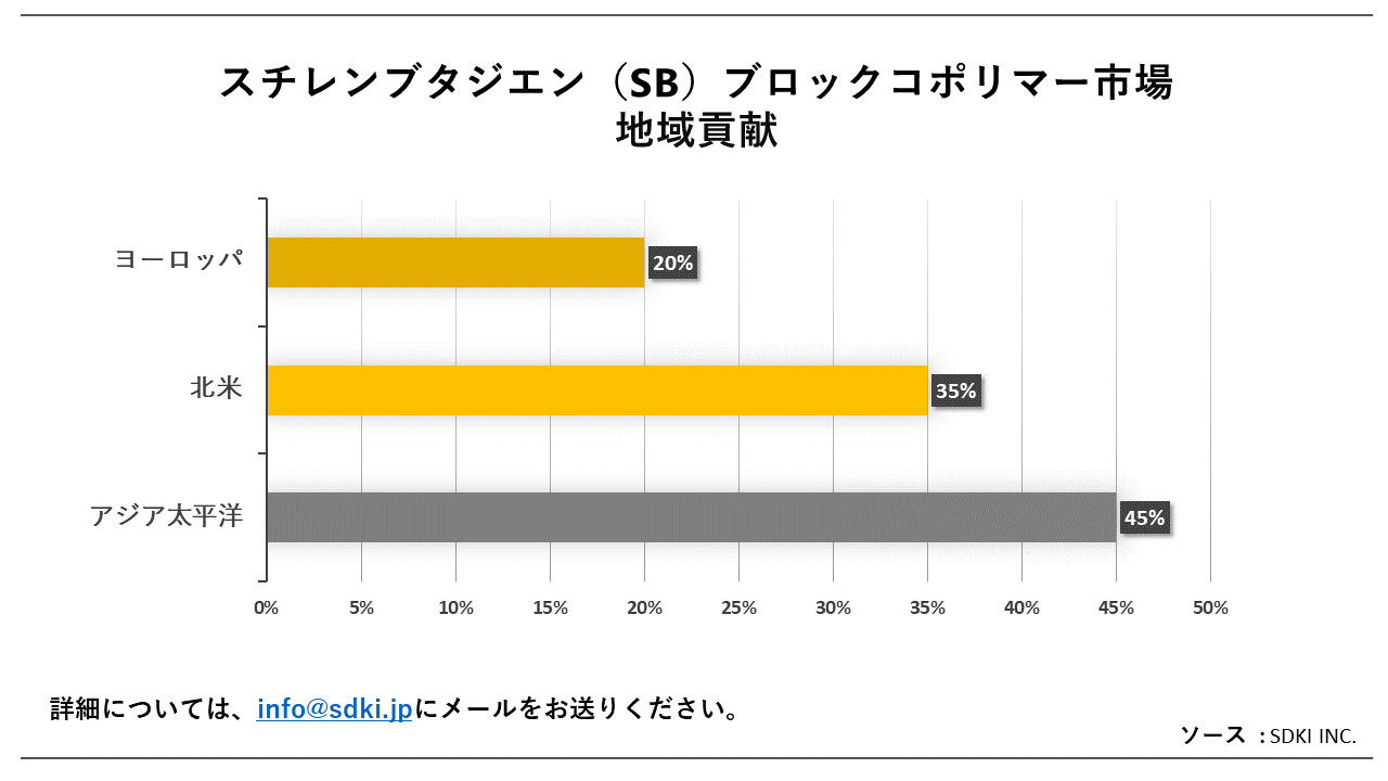 質問:アジア太平洋地域がスチレンブタジエン(SB)ブロックコポリマー市場で最も有利な機会を提供すると予想されるの理由は何ですか? 日本におけるスチレンブタジエン(SB)ブロックコポリマー市場の傾向は何ですか?