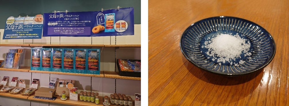 三豊市仁尾町にある父母ヶ浜は夕日が美しいスポットとして知られ、水面に反射したような写真が撮れることで“日本のウユニ塩湖”ともいわれるインスタ映えする景勝地です。その仁尾町で1919年に塩づくりの会社として創業し、造船業や車エビの養殖、にがり製造など海に深くかかわりながら100年以上の事業を継続している仁尾興産株式会社。今回、海と日本プロジェクトのアクションに賛同し、お土産としても人気で父母ヶ浜の海水塩を100%使用した「父母ヶ浜バウムクーヘン 塩キャラメル味」の海と日本プロジェクトロゴ入りパッケージを発売いたします。
