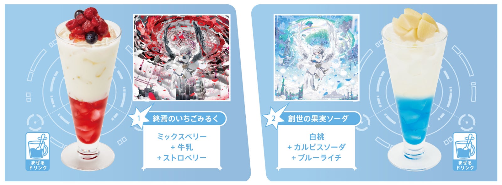 12月25日(水)に発売する「まふまふ」のNewアルバム「世会色ユニバース」のジャケットをイメージしたコラボドリンク2種[各750円(税込)ノンアルコール]をご用意しました。