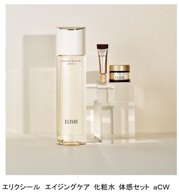 資生堂は、スキンケア市場16年連続売上No.1※2 のエイジングケア※1ブランド「エリクシール」より、「エリクシール エイジングケア 化粧水 体感セット aCW」【全1品 参考小売価格3,000円(税込3,300円)】を2023年11月21日(火)に数量限定発売します。 * 価格は参考小売価格です。(店舗によって異なる場合があります)