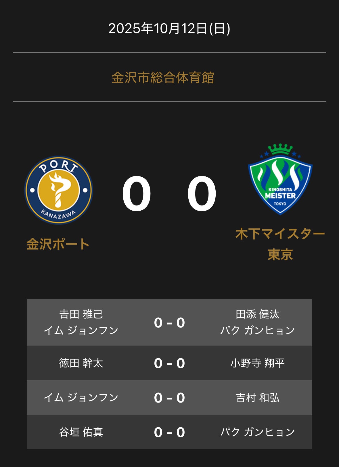 ノジマTリーグ 2025-2026 公式戦 10月12日開催 金沢ポート vs 木下マイスター東京 対戦オーダー発表