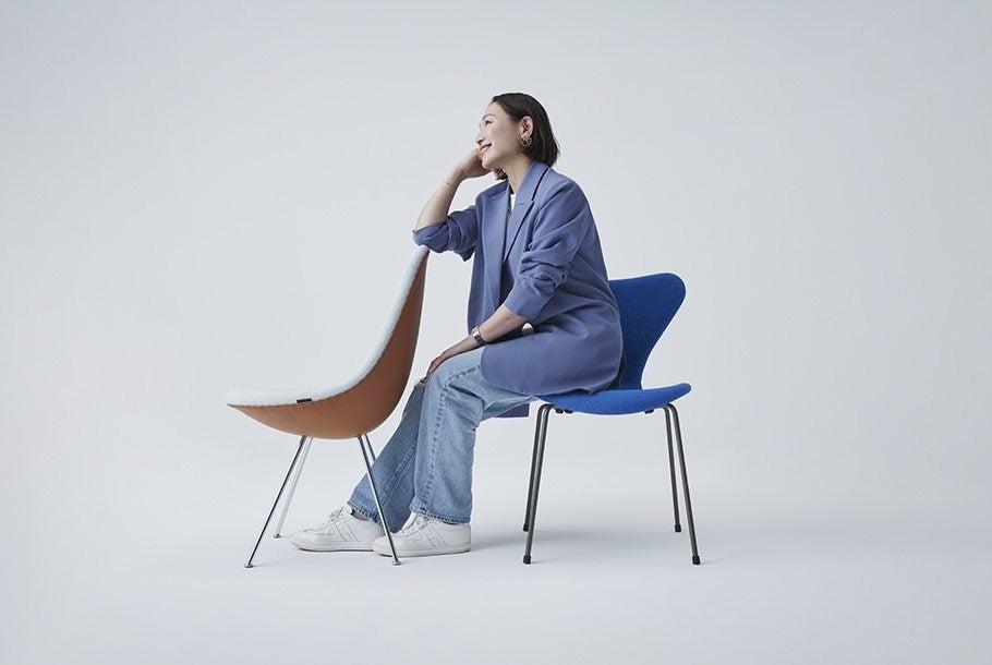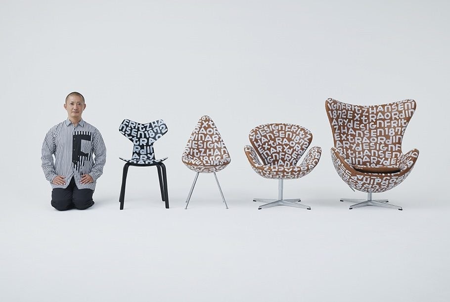 自身のアトリエの家具をすべて<フリッツ・ハンセン>で揃えるほどのこのブランドの愛用者。過去に<ホワイトマウンテニアリング>とコラボレーションしたオリジナルチェアを制作した経験も。今回はアルネ・ヤコブセンが残した名作のひとつ「オックスフォードチェア」を選び、ブランドのアニバーサリーイヤーを意識して、その張り地にカスタマイズを施します。