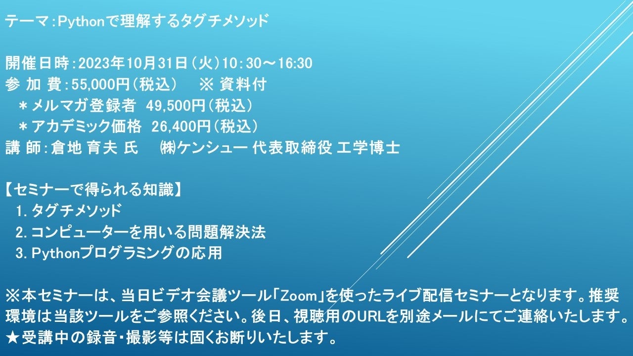 【ライブ配信セミナー】Pythonで理解するタグチメソッド 10月31日(火)開催 主催:(株)シーエムシー・リサーチ