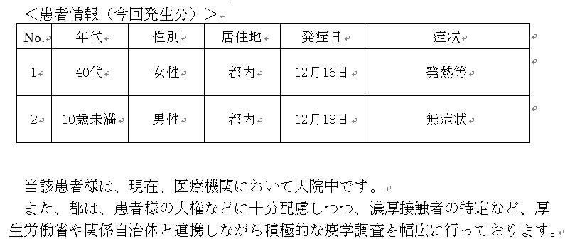 この度、東京都健康安全研究センターにおいて、変異株PCR検査でオミクロン株疑いが確認され、ゲノム解析を行った結果、下記のとおり、オミクロン株が判明したので、お知らせします。