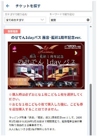 ご家族でご来場の際には、現在発売中のデジタル乗車券「のせでん1dayパス~茜音・藍彩1周年記念ver.」のご利用がおすすめです。