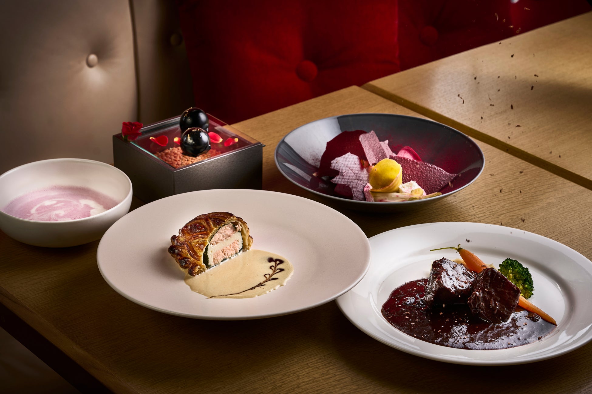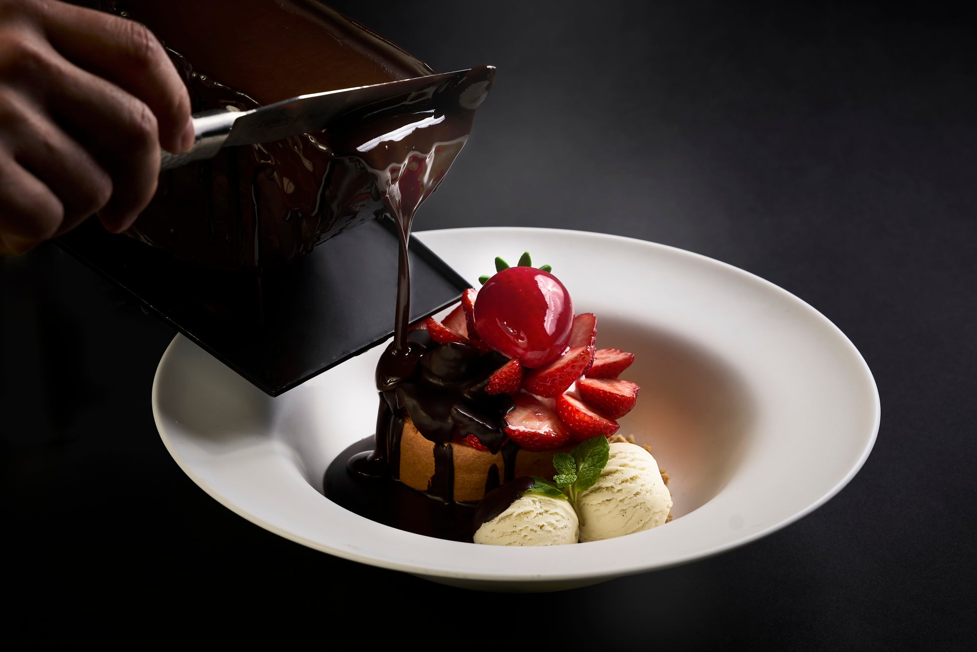 ディナーでは、バレンタインシーズンならではの要素を取り入れたコースメニューをご用意。チョコレートボックスをモチーフにしたアミューズから始まり、スープには旬を迎える紅芯大根を使用。素材本来の色合いを生かしたやわらかなピンクがコース全体をロマンティックに彩ります。メインの肉料理ではアクセントとしてチョコレートを使用し、深みのあるコクとほのかな甘みを重ねることで味わいに奥行きをもたらします。味覚はもちろん、視覚までも魅了するバレンタインならではの心ときめくディナーをお楽しみください。