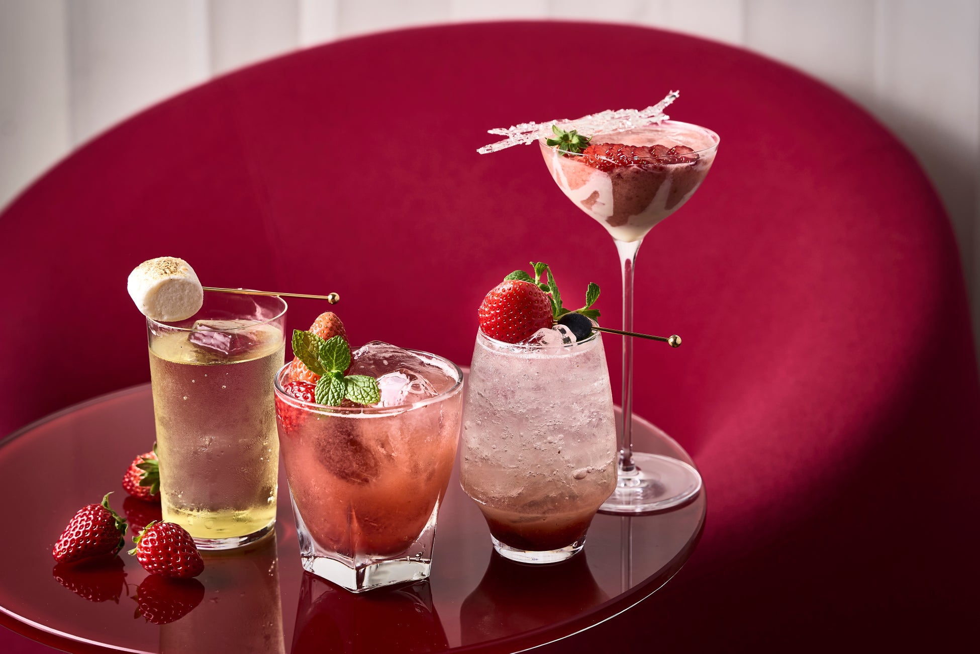 また、苺がもつ多彩な表情を現代的なミクソロジーの発想で仕立てた「Strawberry Heart Moments Cocktail(ストロベリー・ハート・モーメンツ・カクテル)」を期間限定でご用意。なめらかな口当たりのフローズンスタイル、クラシックなスピリッツを基調とした一杯、そして洗練されたローアルコールカクテルまで、幅広いバリエーションをラインアップ。