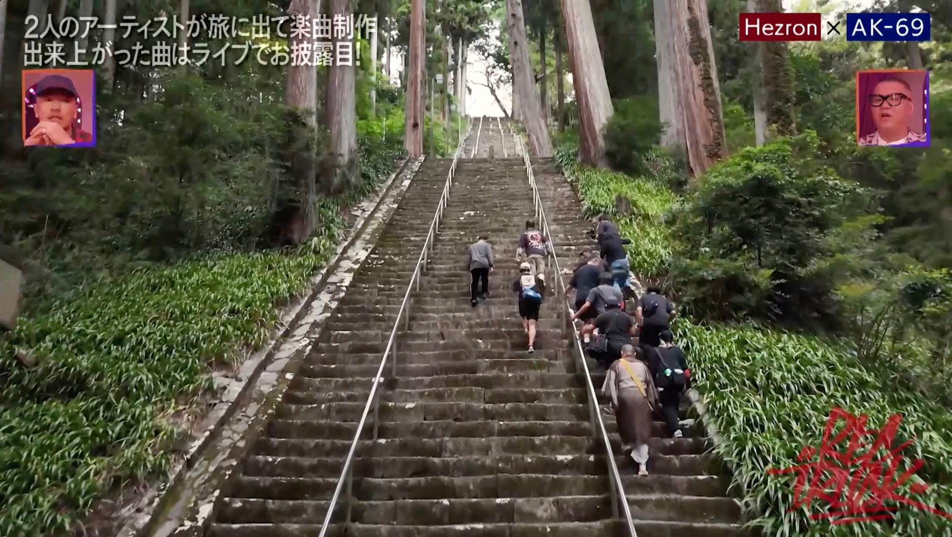 第二弾では、神奈川の新星、ラッパー・Hezronと、名古屋のレジェンドラッパー・AK-69が登場。「日本を覚醒させる曲」をテーマに、コラボ楽曲完成に向けてパワースポットを巡りました。