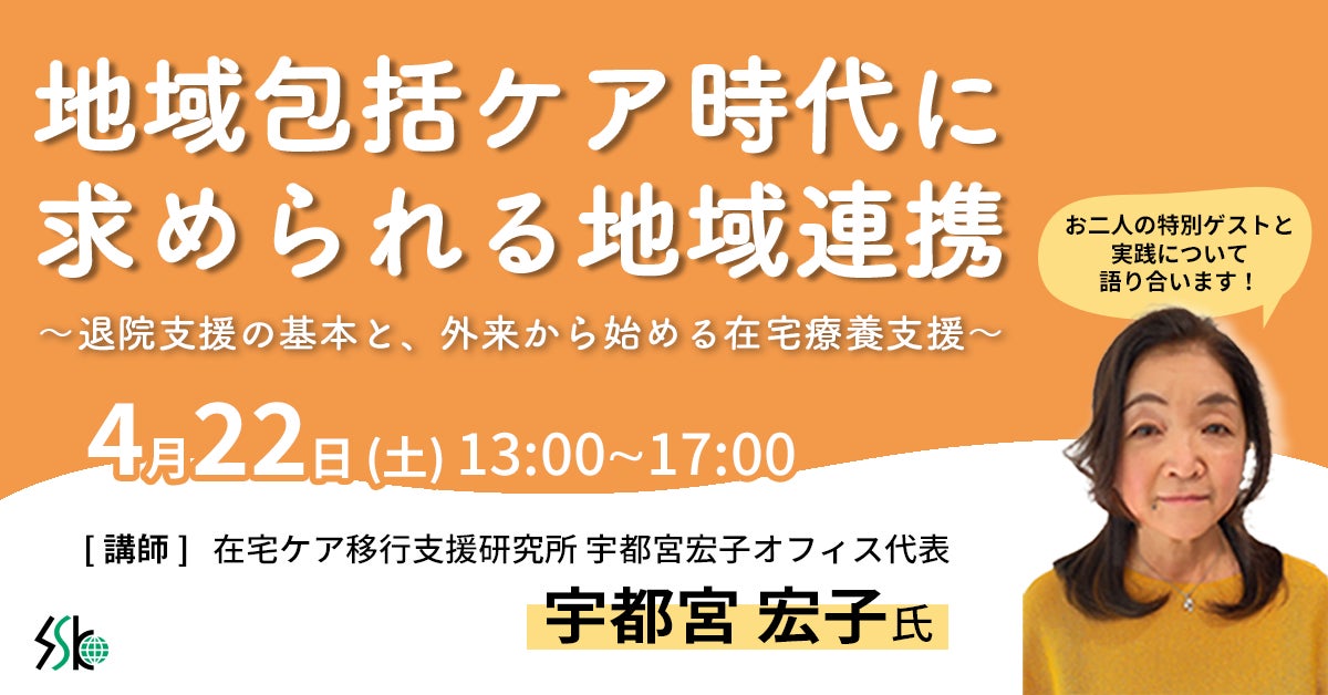「地域包括ケア時代に求められる地域連携」と題して、在宅ケア移行支援研究所 宇都宮宏子オフィス 宇都宮 宏子氏によるセミナーを2023年4月22日(土)に開催!!