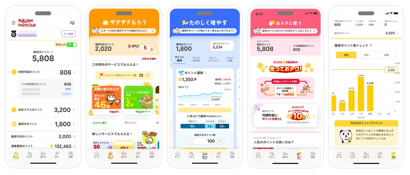 楽天、「楽天ポイント」公式アプリ「楽天PointClub」をリニューアル