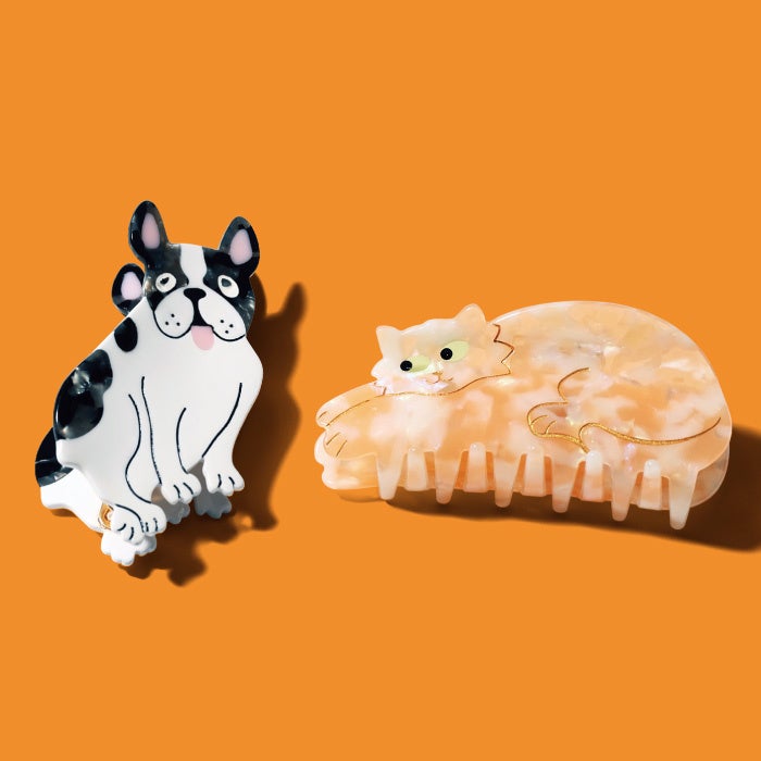ヘアークリップ(左:フレンチブルドック、右:赤猫) 各税込3,300円