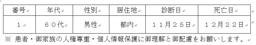都内で新型コロナウイルスに感染した方が死亡されましたのでお知らせします。