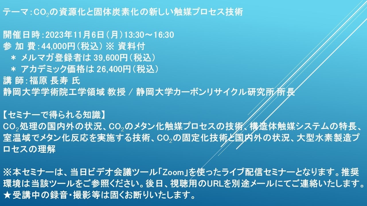 【ライブ配信セミナー】CO2の資源化と固体炭素化の新しい触媒プロセス技術 11月6日(月)開催 主催:(株)シーエムシー・リサーチ