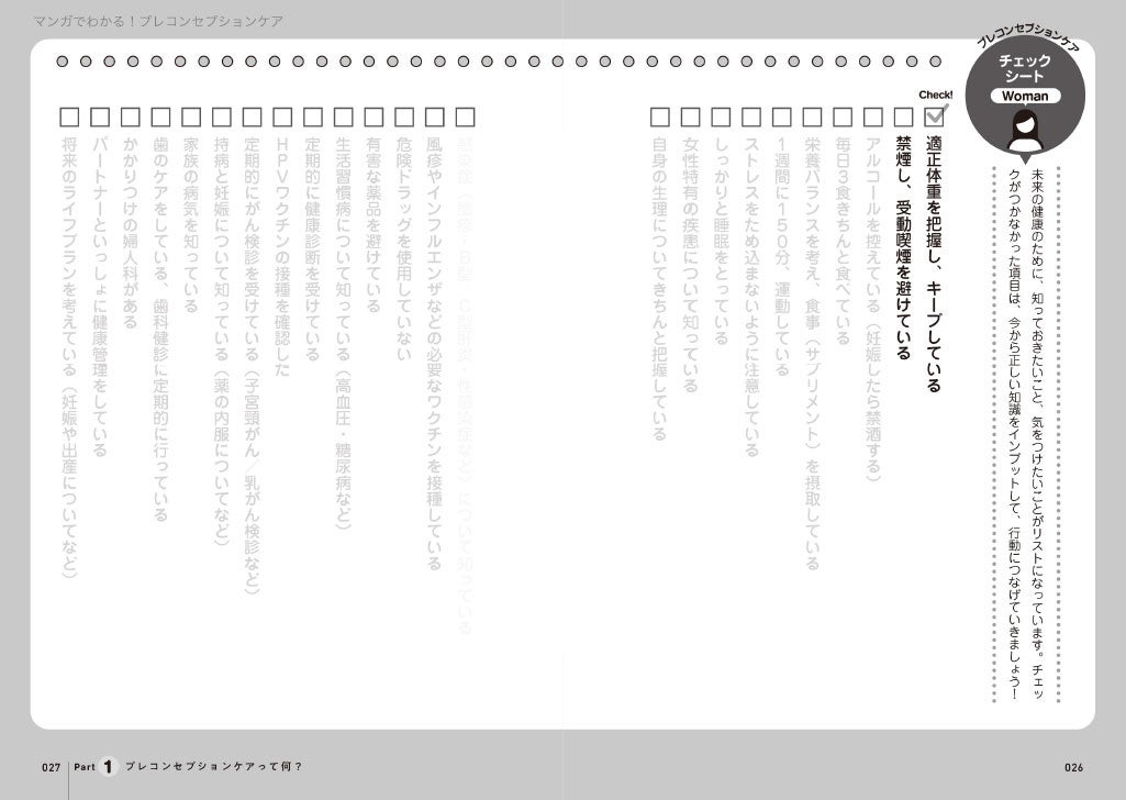 知っておきたい「プレコン」基礎知識にくわえ、今日から実行できる「プレコン」アクションも網羅しています。また、すぐにトライできるチェックシート&ワークシートも掲載。一人で、パートナーと一緒に、友だちと、親子で…など、あなたの「プレコン」を今日から始めることができます。
