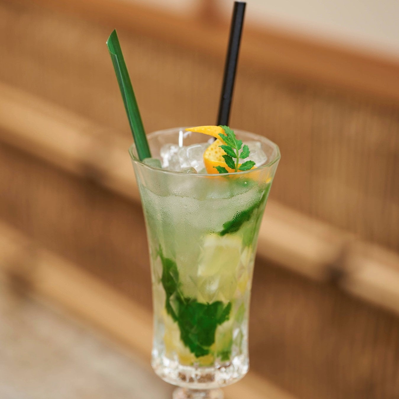 果実とバニラのアロマが漂う、ボタニカルで上品なテイストの「季の美 エディションG exclusively blended for L.C.」をベースに、レモンバーム、レモンオレオサッカラム、柚子SAKEリキュールなどを合わせ、アクセントとして木の芽、柚子ビターを加えてシャンパンで満たしたジュレップスタイルのカクテル。