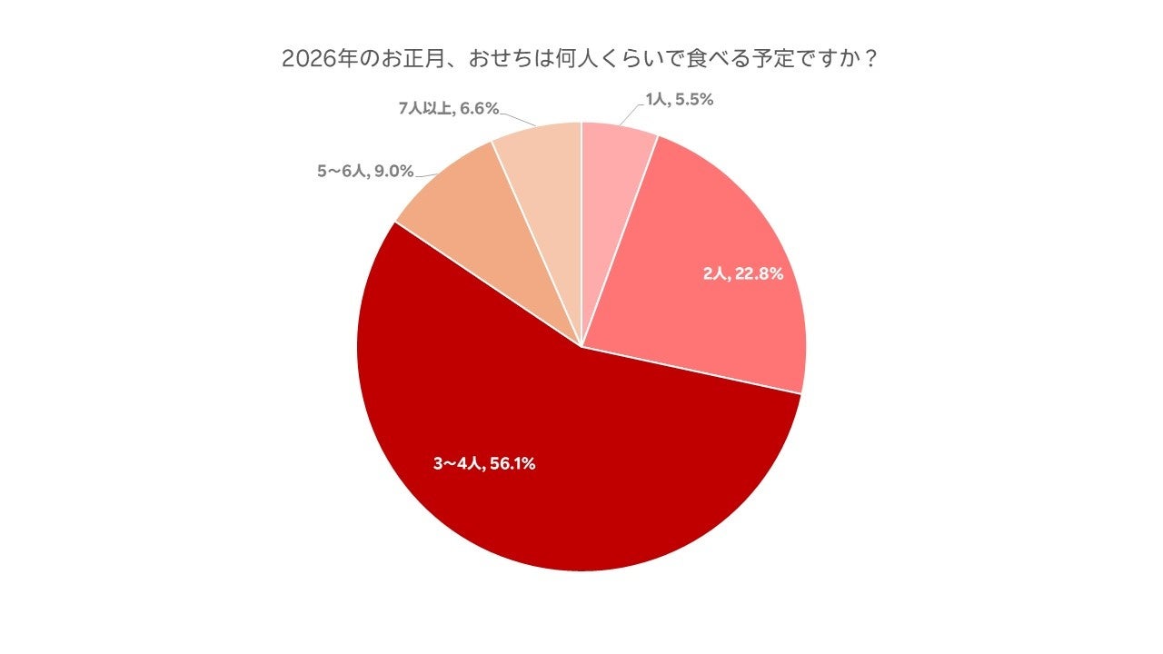 ・2026年のおせちを食べる人数は、「3~4人」が5割以上、次いで「1~2人」が約3割