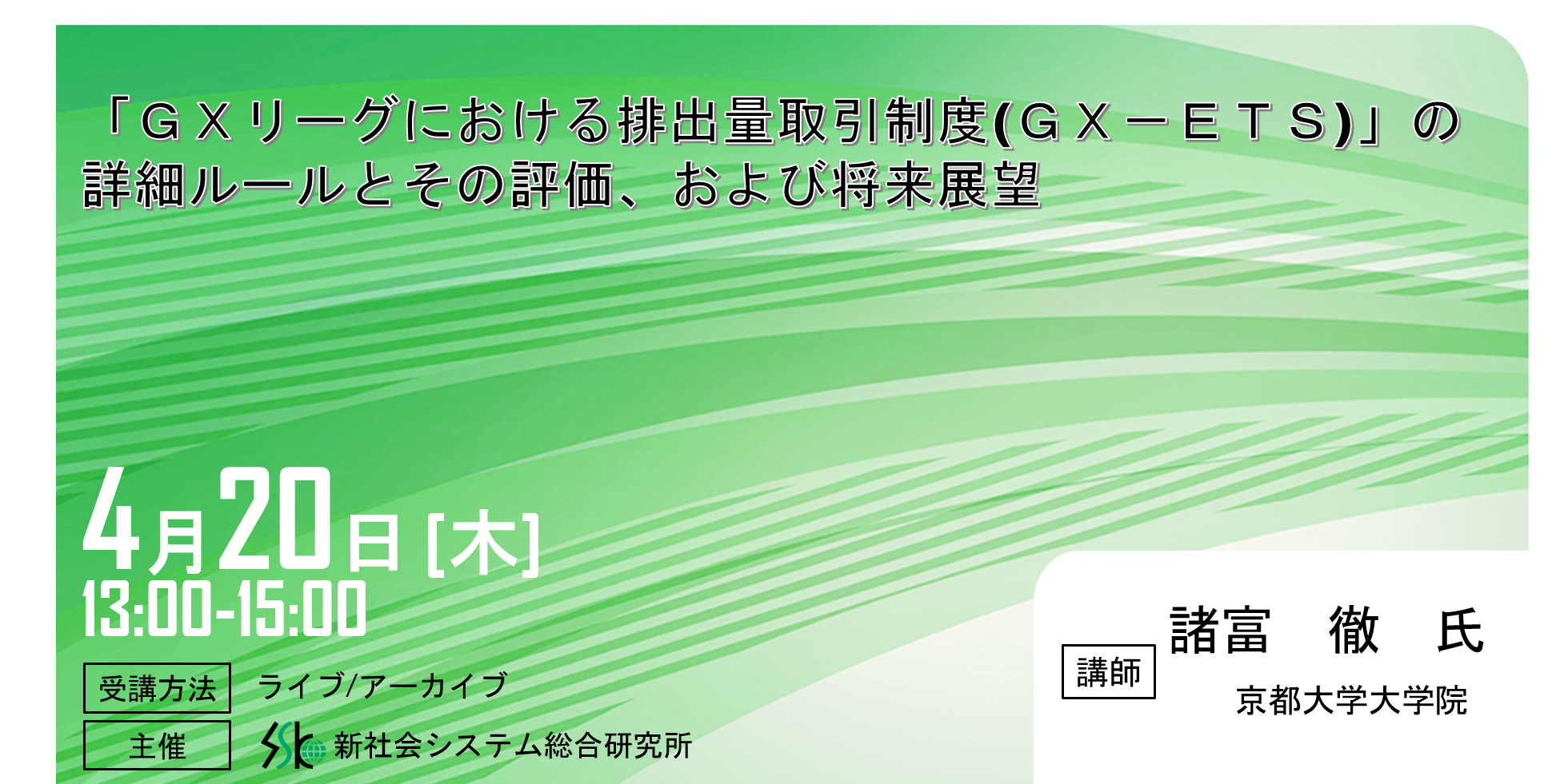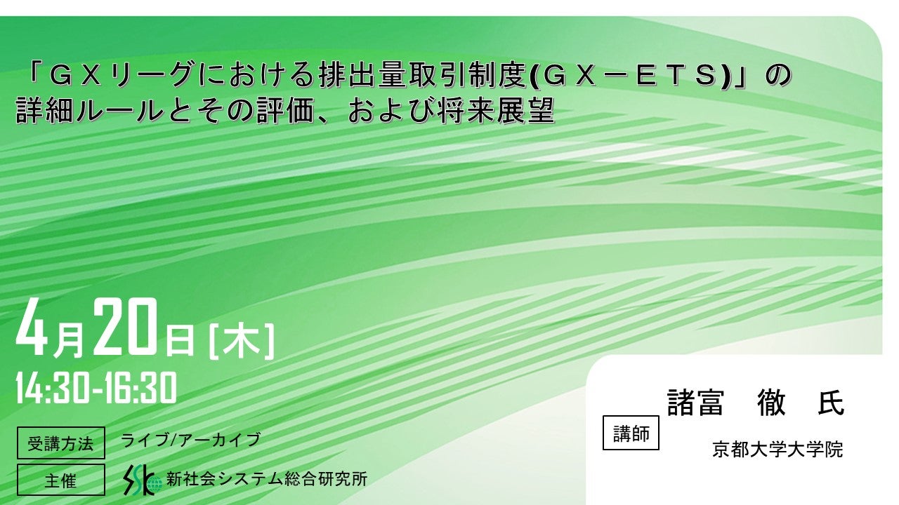 「GX制度(GX-ETS)ルールと評価および展望」と題して、京都大学大学院 経済学研究科 教授 諸富 徹氏によるセミナーを2023年4月20日(木)に開催!!
