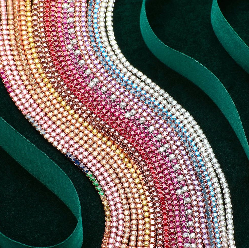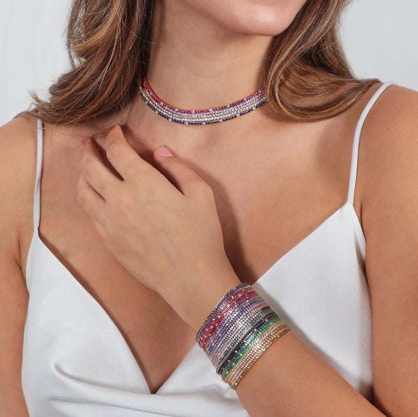 すべてスターリングシルバー(ローズコーティング)、マルチカラージルコニア/約37+5㎝