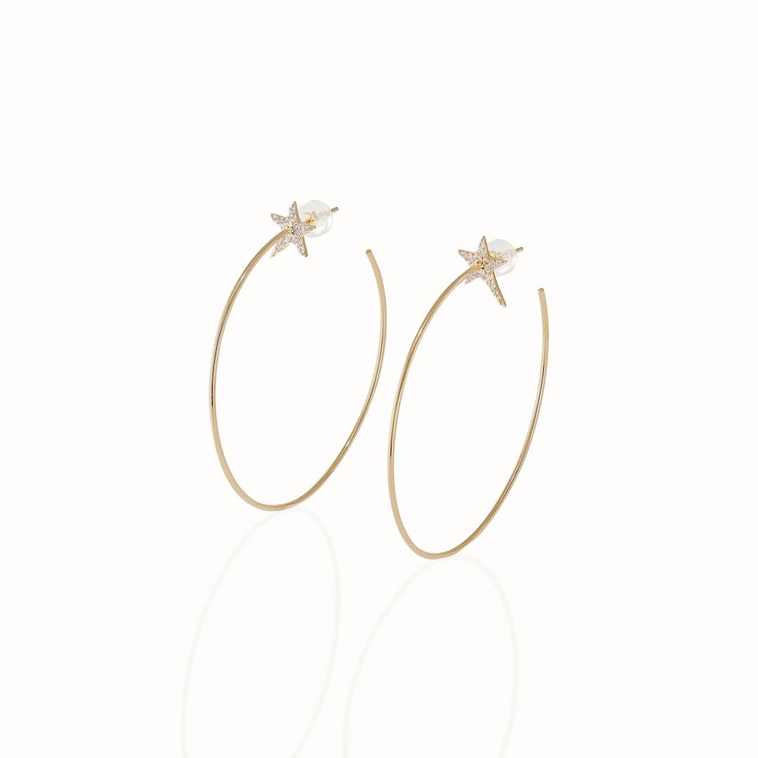 ホワイトダイヤモンドが煌めくアシンメトリーのスターモチーフが遊び心と華やかさを兼ね備えたフープピアスです。
