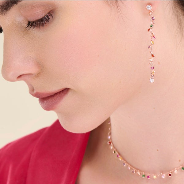 素材は主にスターリングシルバー(925シルバー) 。ローズコーティングまたはゴールドコーティングを施し、 石には良質なキュービックジルコニアやクリスタルが丁寧に爪留めされたプロダクトは、 上質な輝きを放ちます。