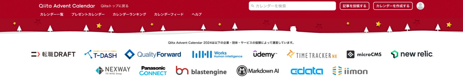 日本最大級のエンジニアコミュニティ「Qiita」が「Qiita Advent Calendar 2024」特設サイトをオープン、カレンダー登録開始!〜13社のスポンサー企業によるプレゼント企画も決定〜