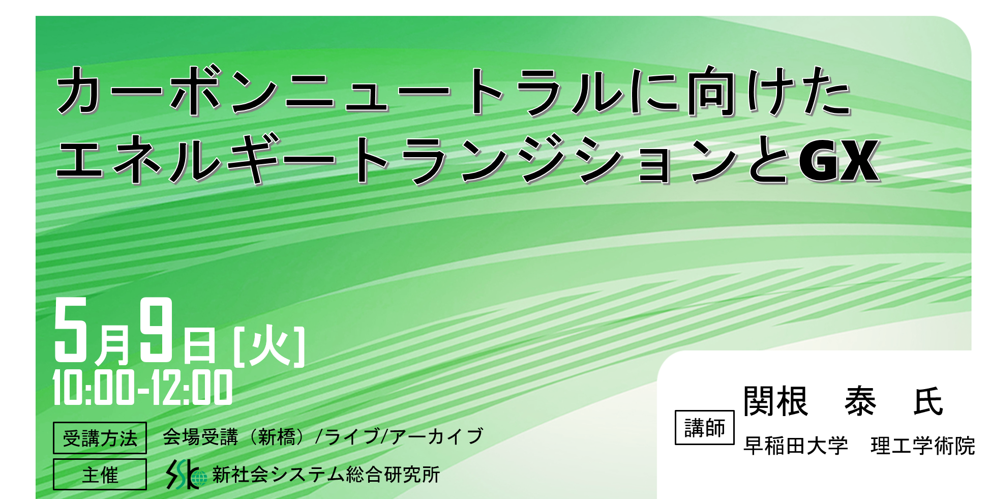 「エネルギートランジションとGX」と題して、早稲田大学 理工学術院 先進理工学部応用化学科 教授 関根 泰氏によるセミナーを2023年5月9日(火)に開催!!