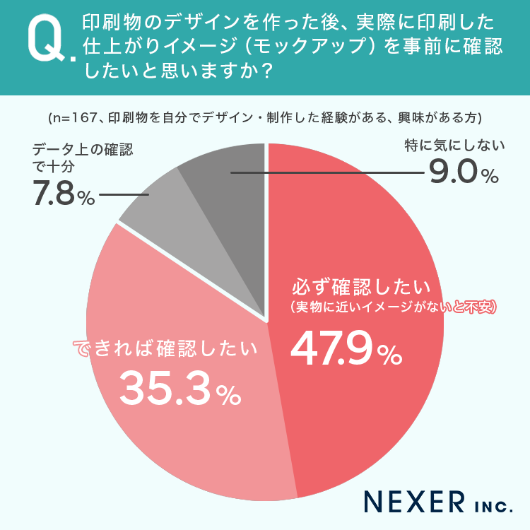 続いて、印刷物のデザインを作った後、実際に印刷した仕上がりイメージ(モックアップ)を事前に確認したいかについても聞いてみました。